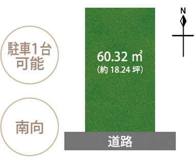 ■土地面積/60.32㎡(約18.24坪) ■建ぺい率/60% ■容積率/160% ■市街化区域/第1種住居地域
